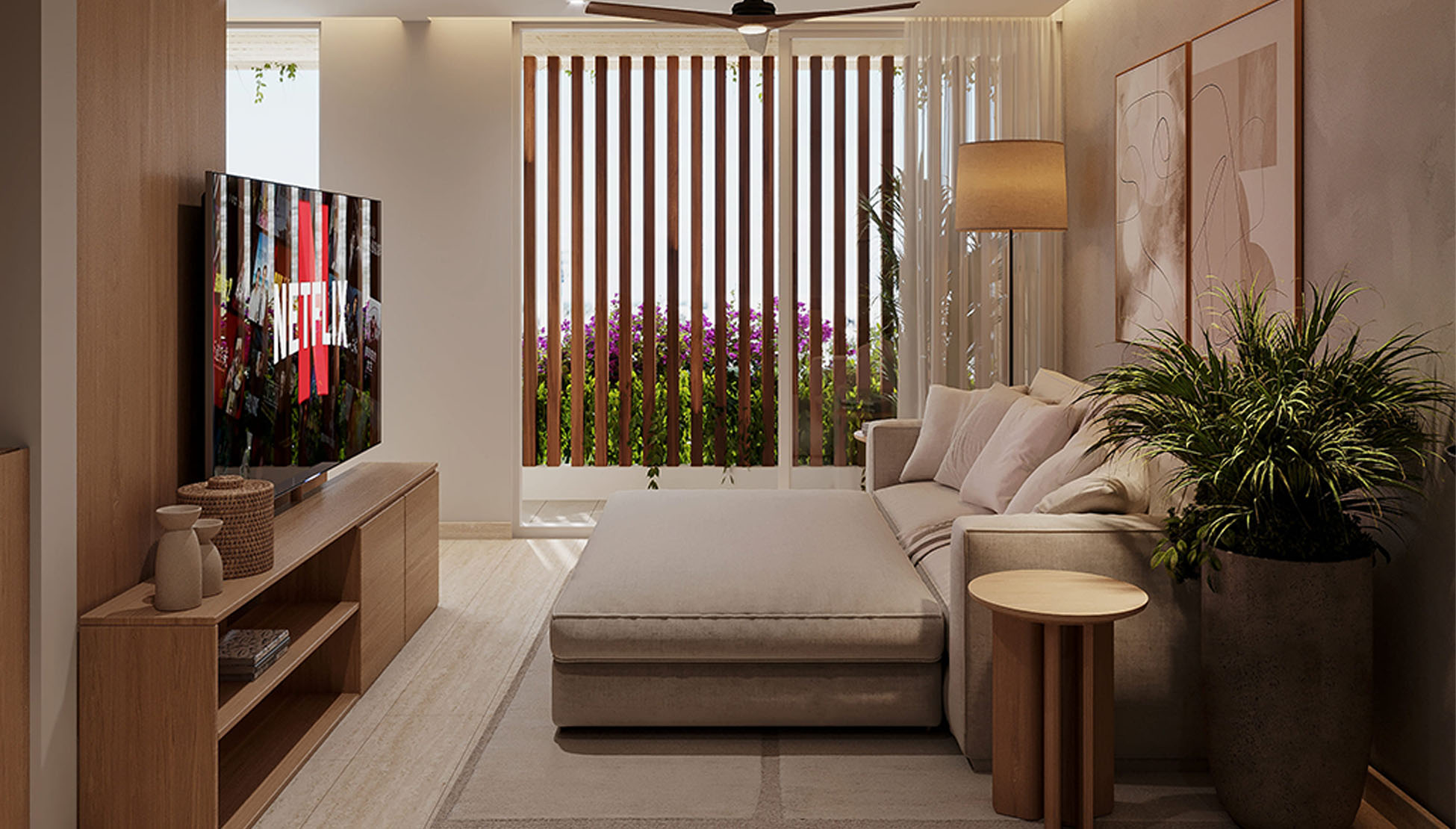 2 BEDROOMS A unique lock-off style residence designed for versatile living, featuring two spacious bedrooms with generous walk-in closets and a private terrace that offers spectacular views. An ideal layout for both comfortable living and flexible use.